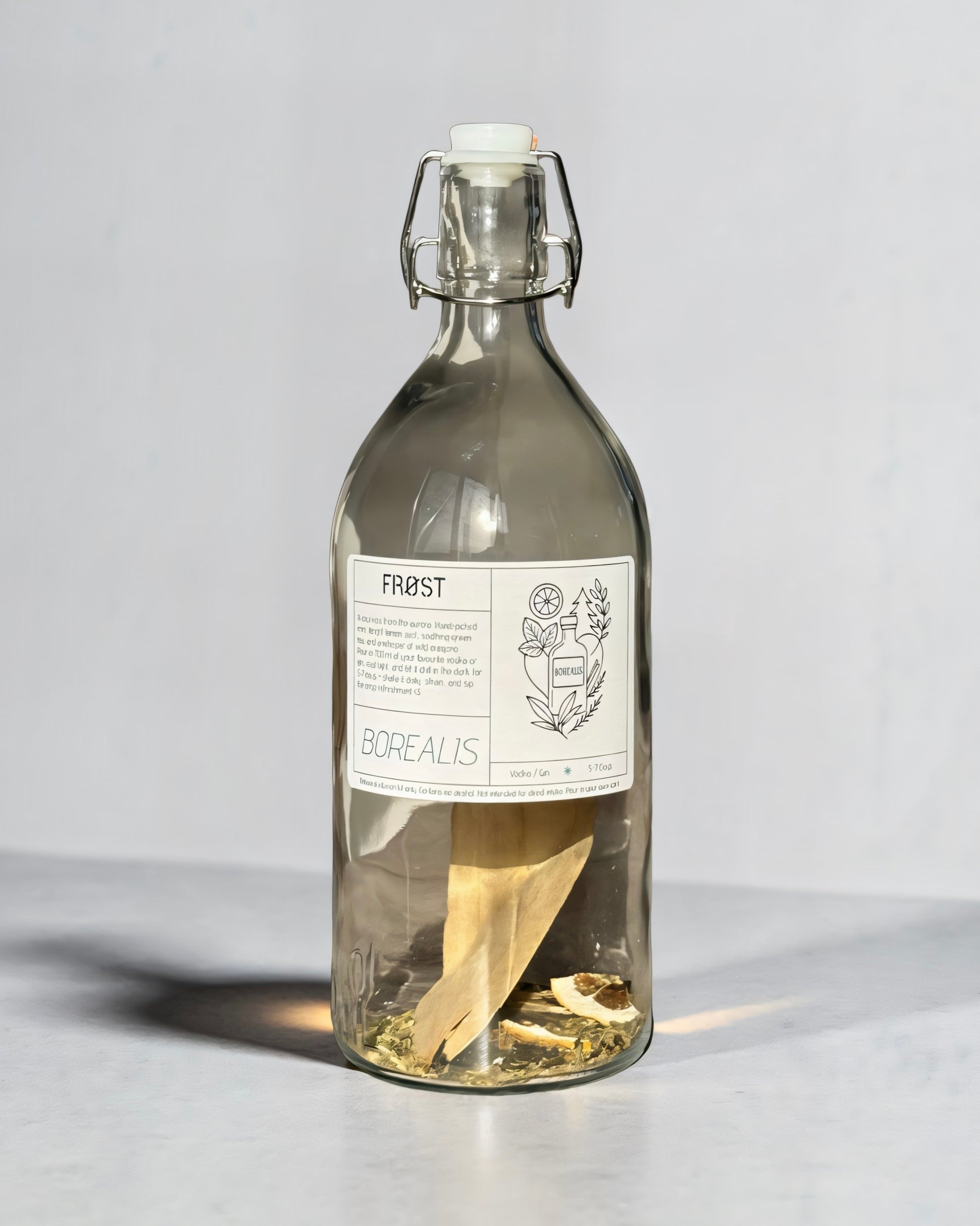 The FRØST Infusion Kit – BOREALIS is a crisp, herbaceous blend inspired by fresh alpine air and northern clarity. Hand-packed in New Zealand, it combines green tea, mint, oregano, and lemon zest — a bright and cooling mix designed to cleanse and uplift. Ideal with vodka or dry gin, this blend offers a refined botanical edge without any overpowering notes.